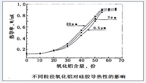 不同粒徑的氧化鋁對硅膠的導熱率的影響如下: