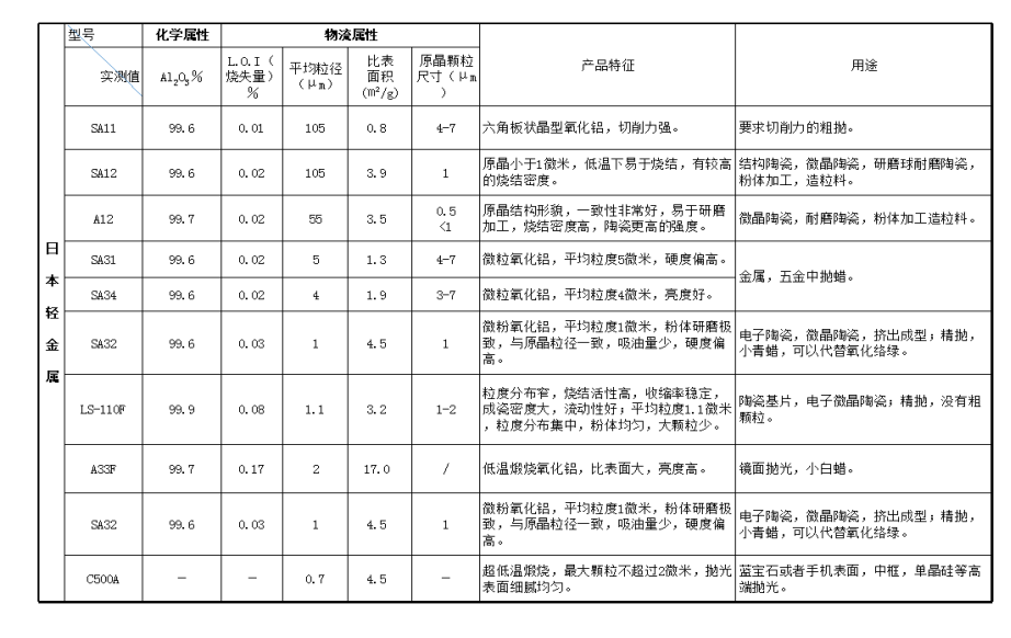 按照氧化鋁產(chǎn)品典型特征種類清晰,應(yīng)用方向明確細(xì)分: