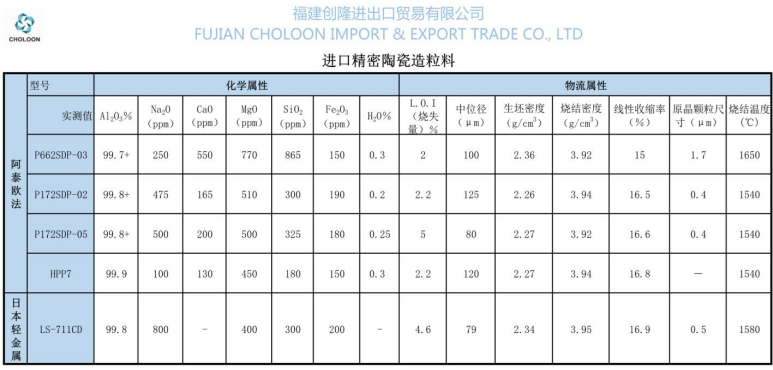 ▼適用于燒成高密度大型陶瓷件的高活性氧化鋁